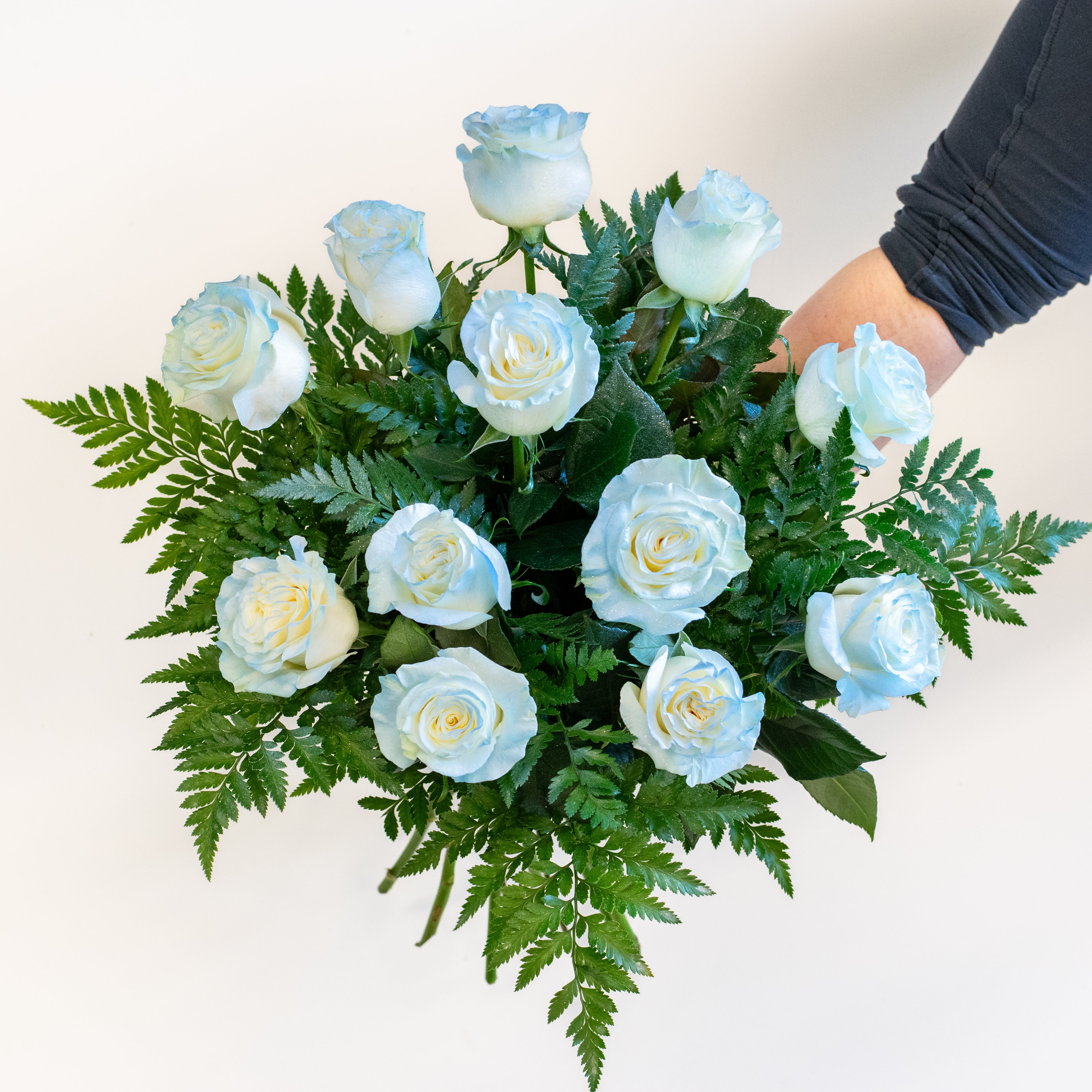 Valentine's Day is even more special with roses. Surprise your loved one with a beautiful bouquet of a dozen hand-tinted blue roses, accented with a lovely silver shimmer. This romantic gesture is sure to be cherished and bring a smile to their face.