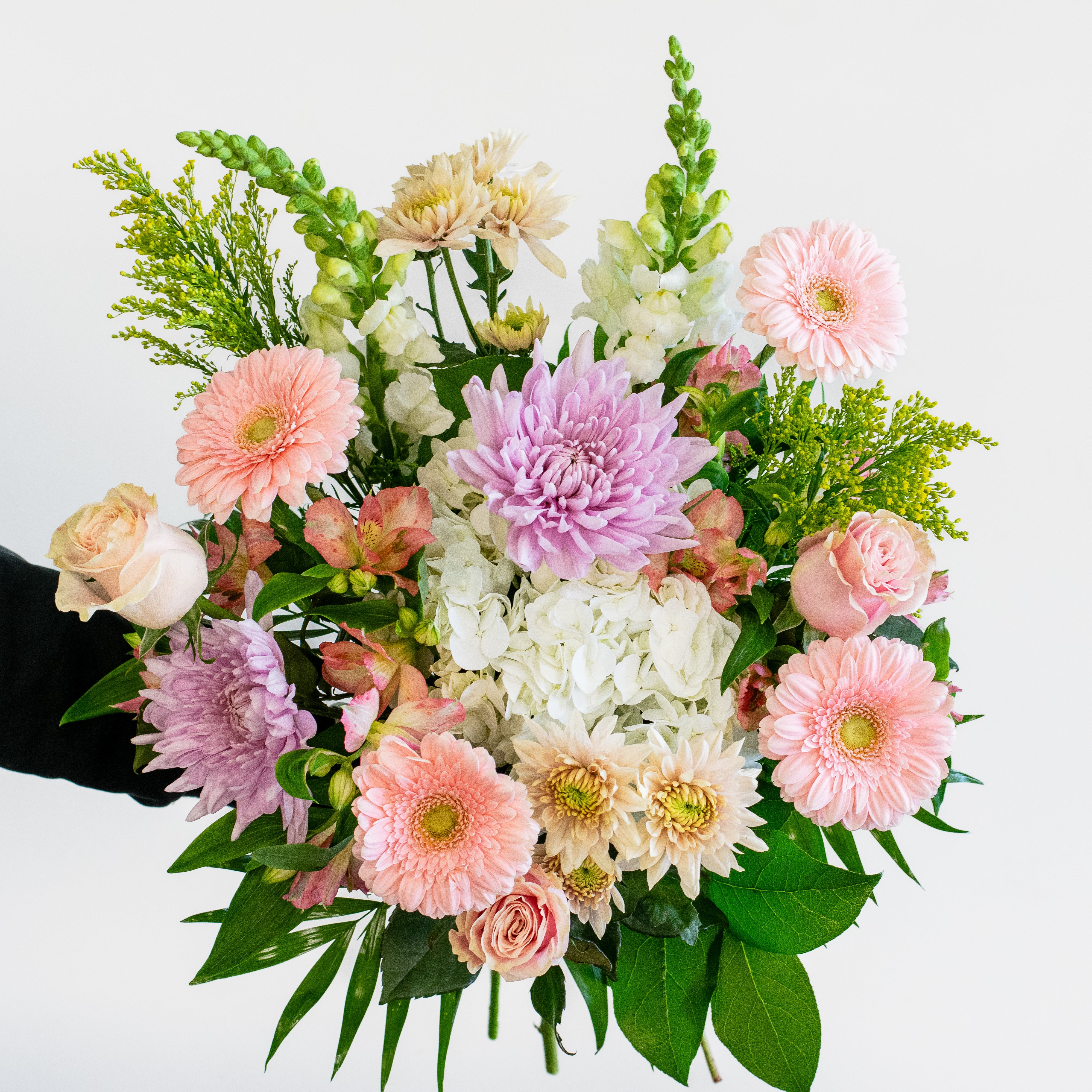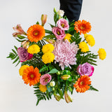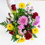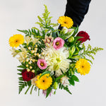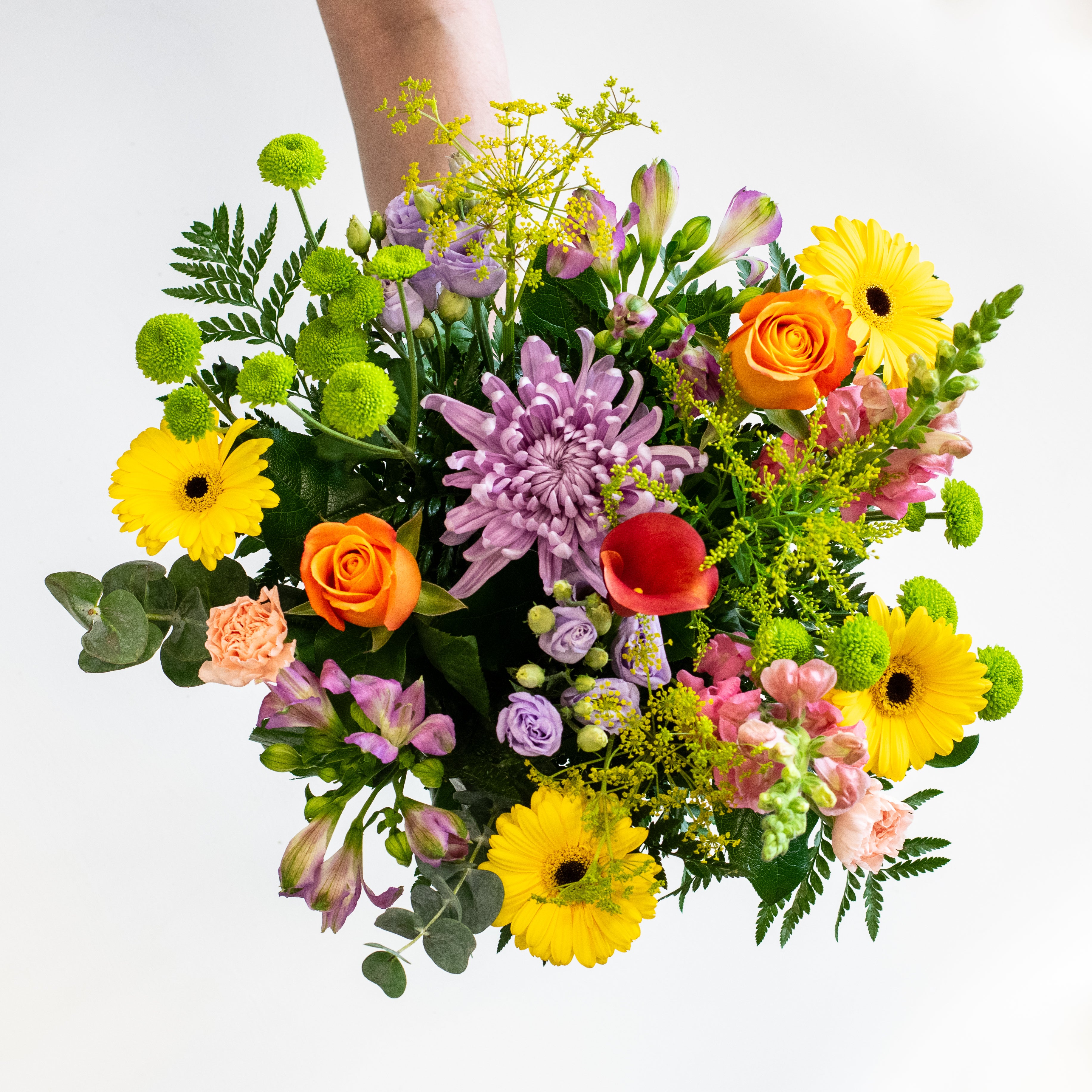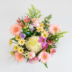 A unique bouquet will be created exclusively for you, using the freshest flowers available at the time of your order, according to your preferences. Please inform us of any particular flowers or colours you would like us to include or avoid by adding a note in the "Special Instructions" section when you view your cart.