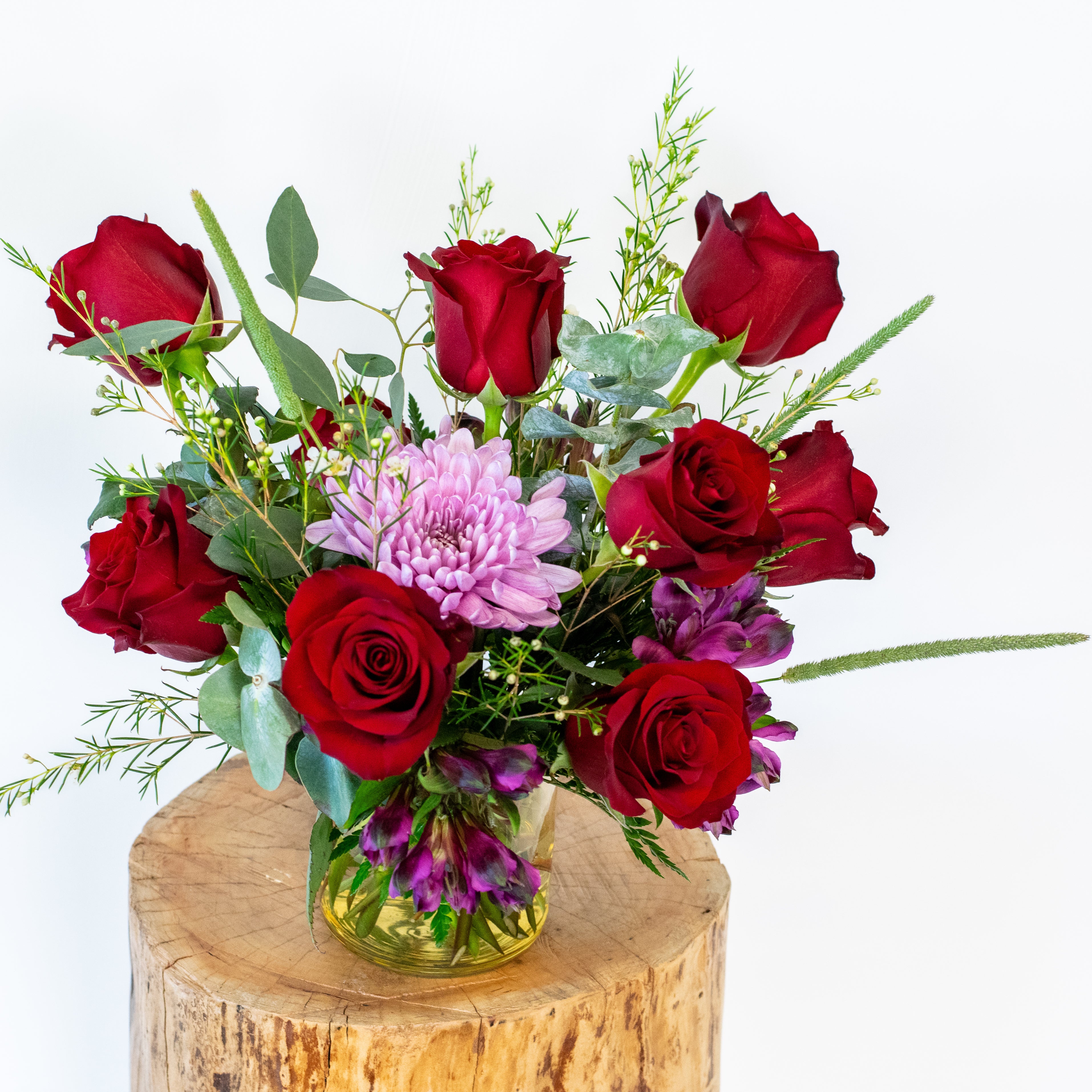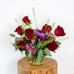 Valentine's Day wouldn't be complete without roses. Show your love by gifting a personalized bouquet of nine roses paired with purple flowers. This romantic gesture is sure to be cherished by your loved one.