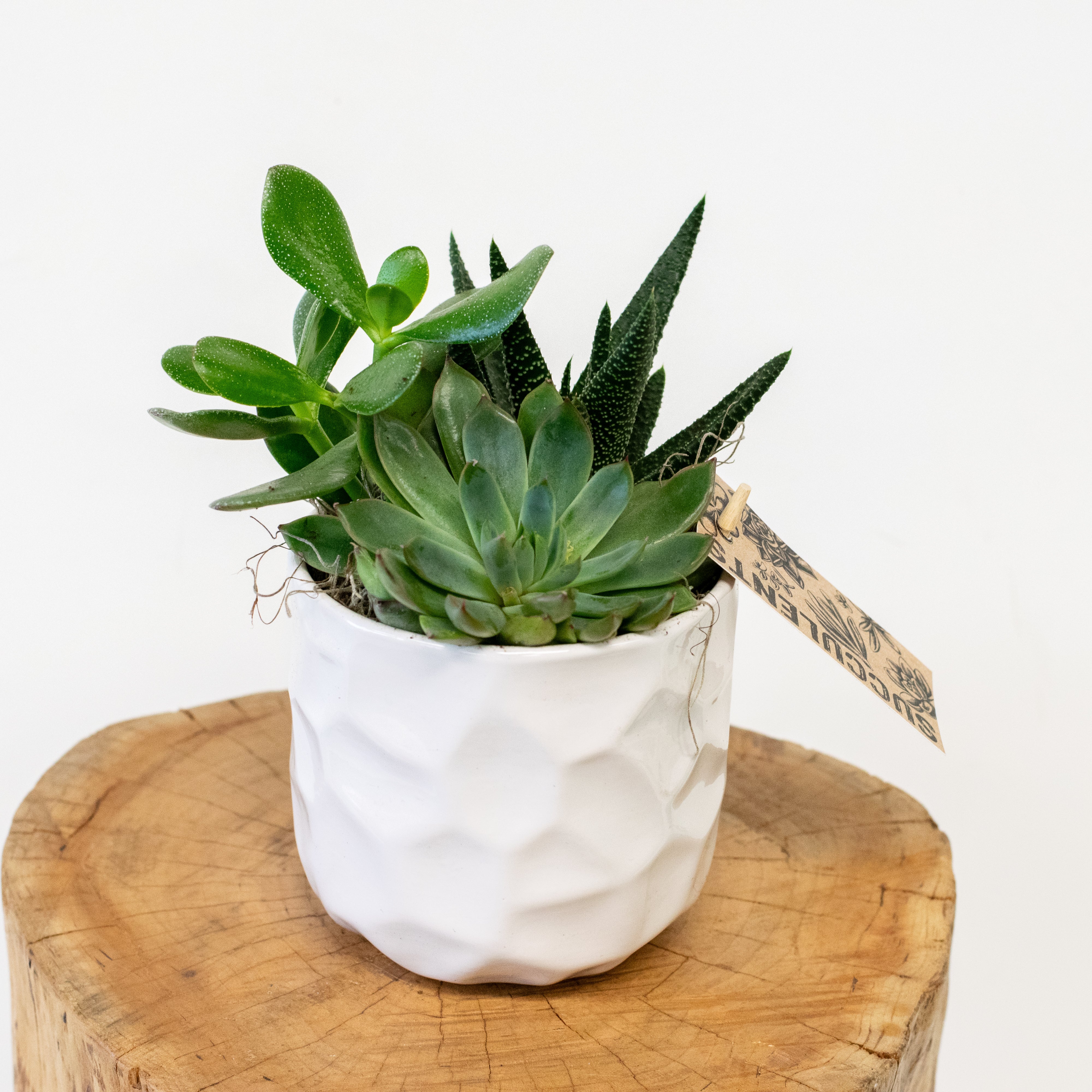 Looking for a meaningful gift for your loved one or best friend? Look no further than this low-maintenance planter filled with a variety of beautiful succulents. These plants embody strength, selflessness, love, and tenacity. Please keep in mind that the selection of succulents included may vary based on availability.