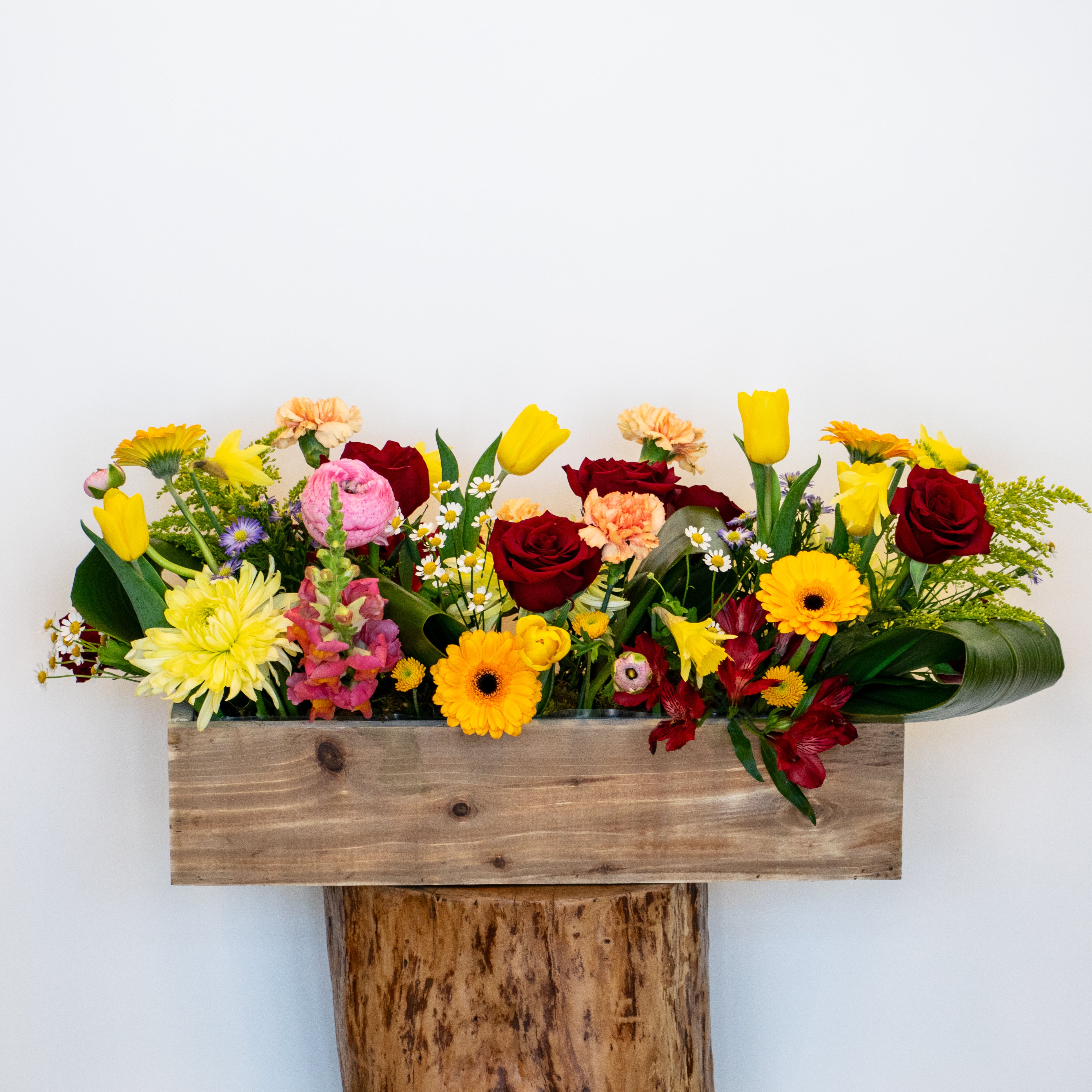 A unique arrangement will be created exclusively for you, using the freshest flowers available at the time of your order, according to your preferences. Please inform us of any particular flowers or colours you would like us to include or avoid by adding a note in the "Special Instructions" section when you view your cart.