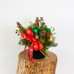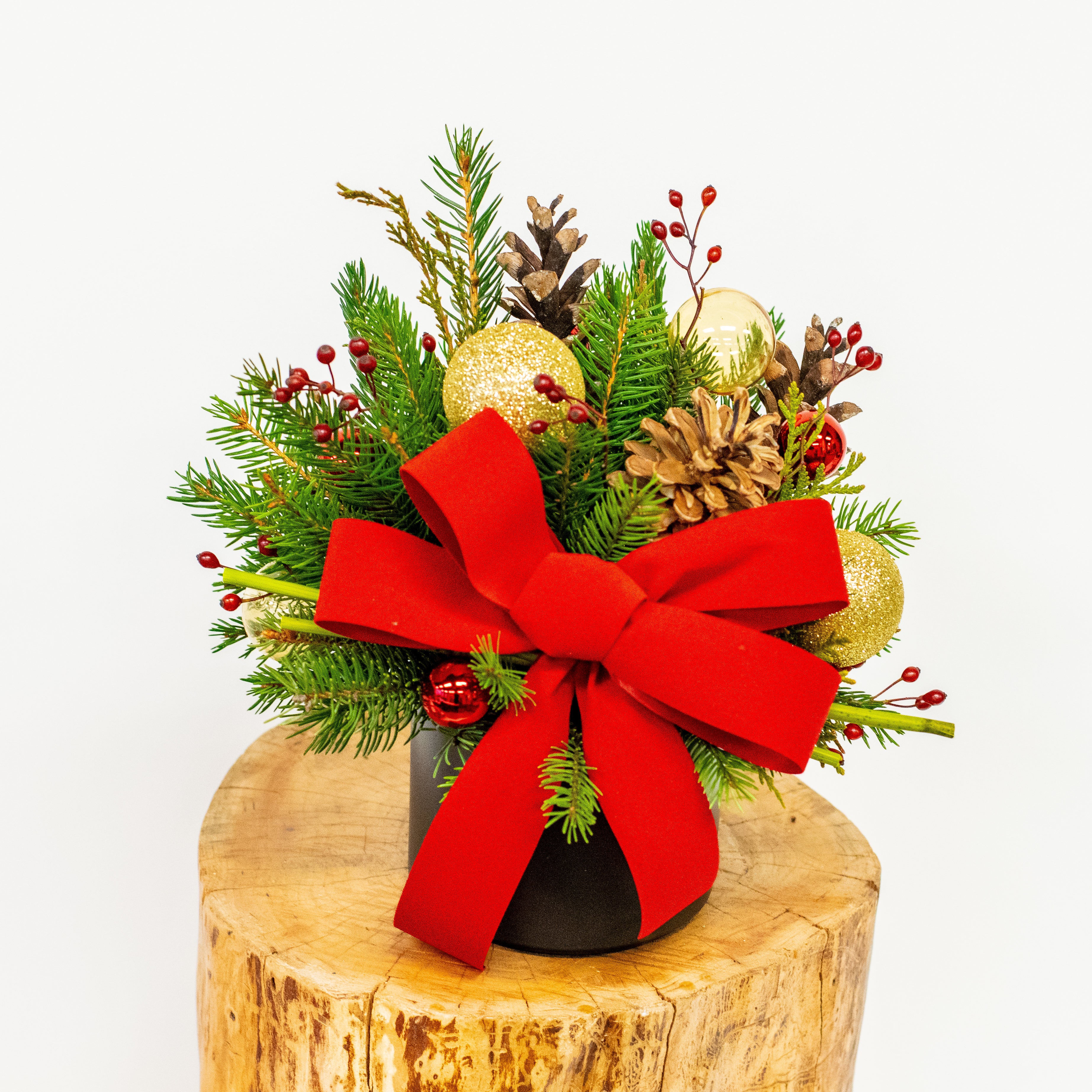 Looking for a way to bring some holiday cheer into your home or brighten someone's day? A festive arrangement is the perfect choice! This design features only red, white, gold & silver colours.
