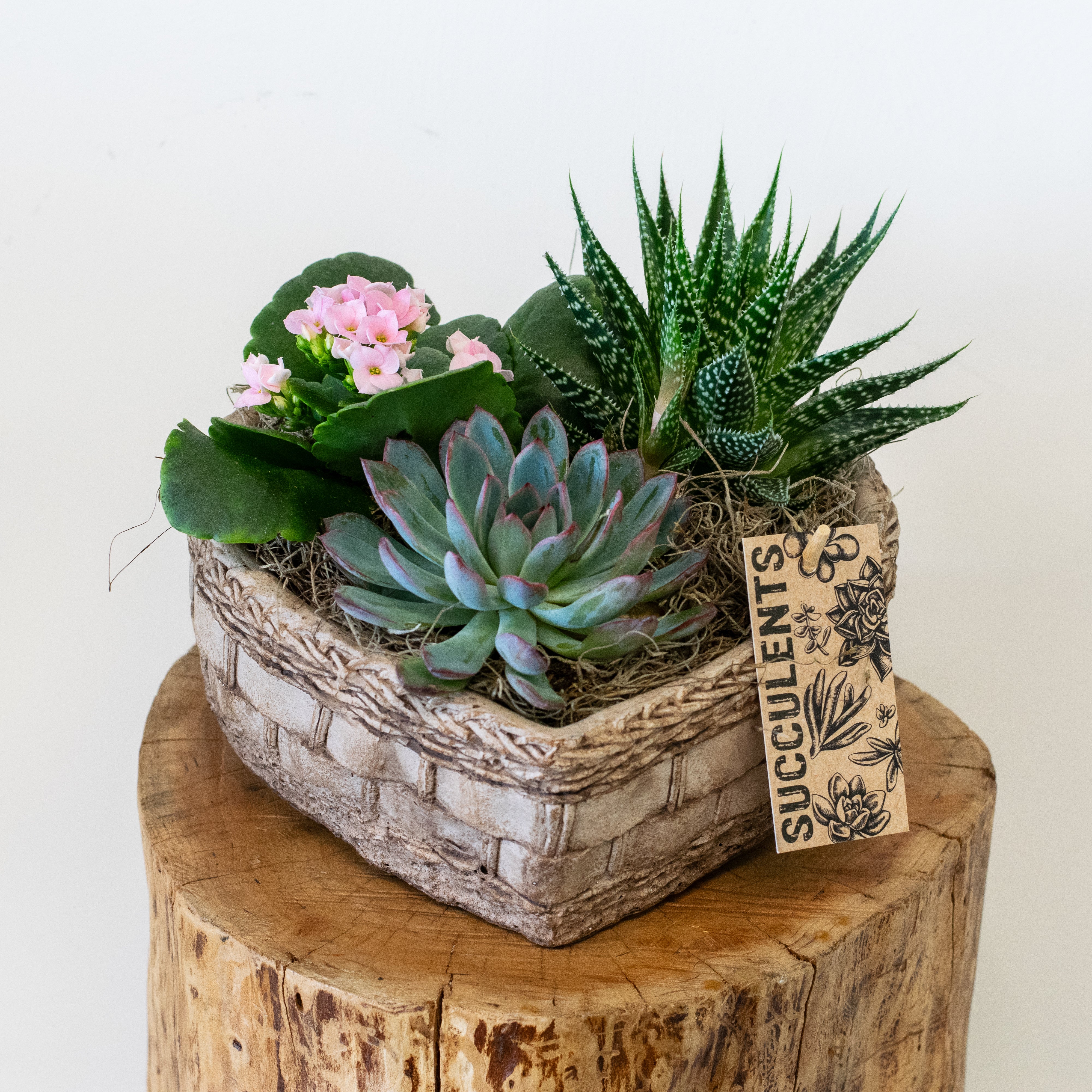 Looking for a meaningful gift for your loved one or best friend? Look no further than this low-maintenance planter filled with a variety of beautiful succulents. These plants embody strength, selflessness, love, and tenacity. Please keep in mind that the selection of succulents included may vary based on availability.
