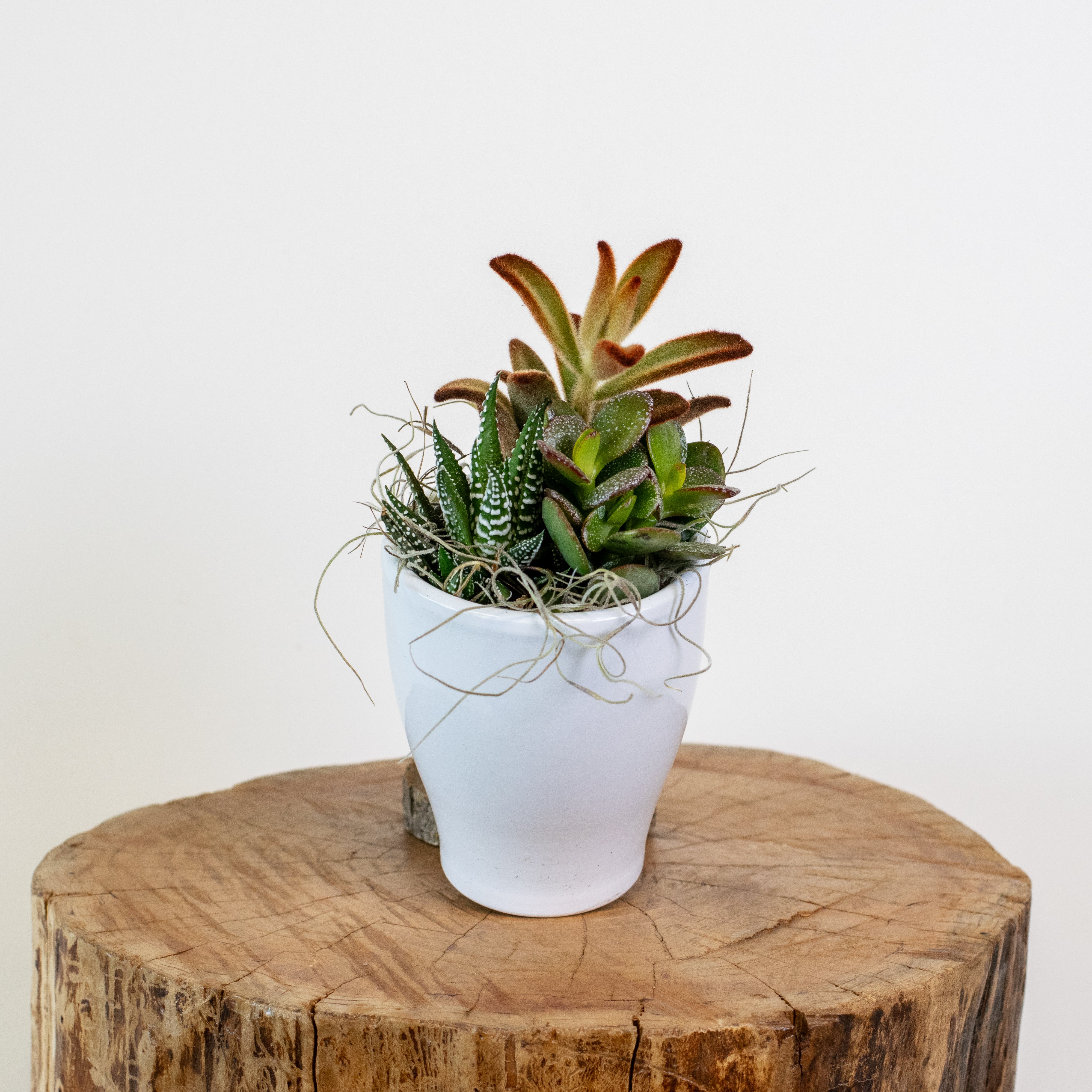 Looking for a meaningful gift for your loved one or best friend? Look no further than this low-maintenance planter filled with a variety of beautiful succulents. These plants embody strength, selflessness, love, and tenacity. Please keep in mind that the selection of succulents included may vary based on availability.